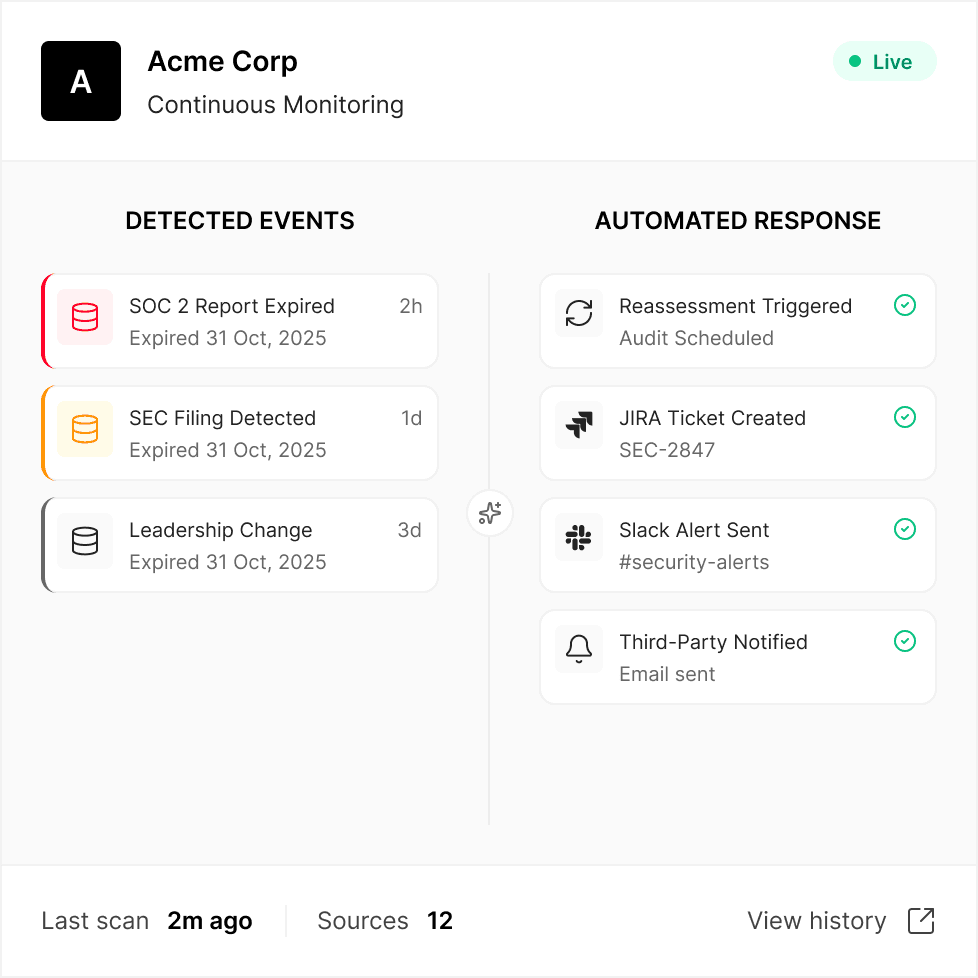 Zania’s AI agents execute the entire TPRM workflow tailored to your risk process - so your team can finally focus on risk decisions, not manual operations.
